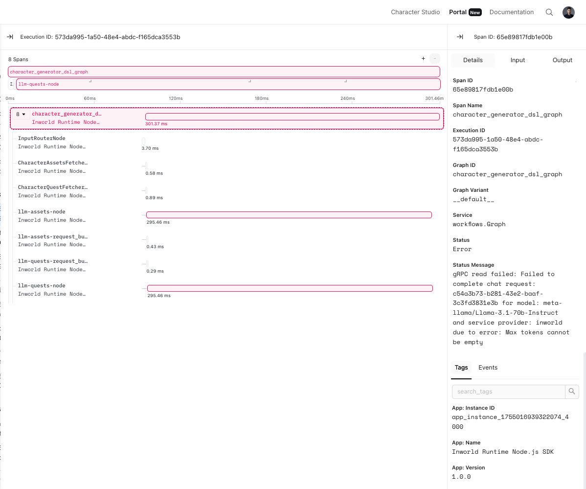 | Span Name | Name of the span. Ex: Graph ID (for graph spans) or Node ID (for node spans) | Runtime |