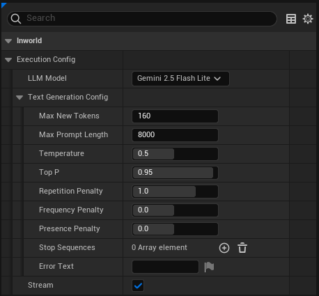 - Usage: Configure in Blueprint editor to control text generation behavior